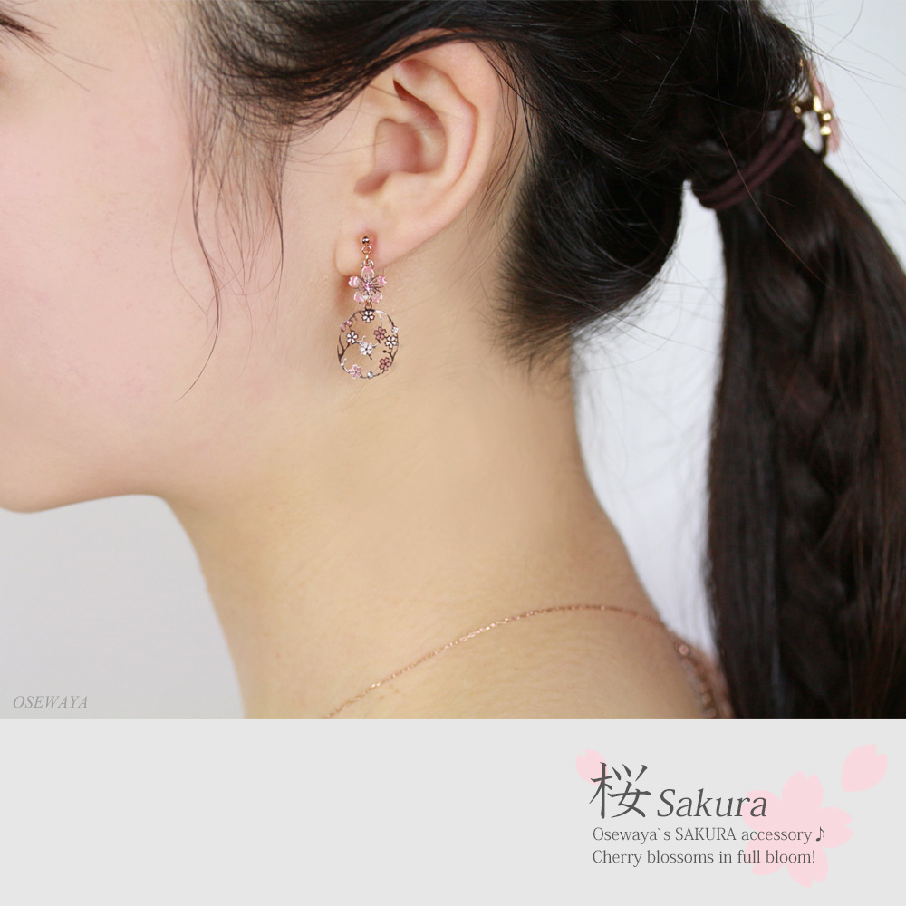 日本制 櫻花褸空網狀耳環 (防敏感)