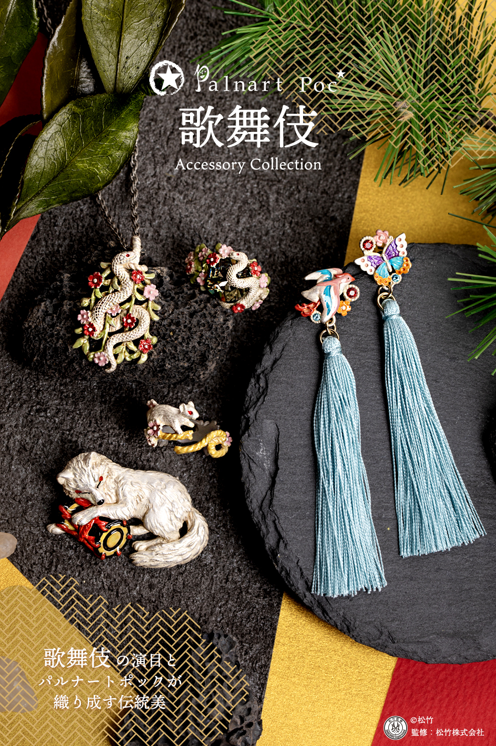 設計靈感來自歌舞伎劇目《寿曽我対面》(曾我大明),講述了曾我兄弟十郎和五郎趁著源賴朝在富士山腳下狩獵之際,為父親報仇的故事。圖案分別取材自兄弟戲服上寬的圖案!